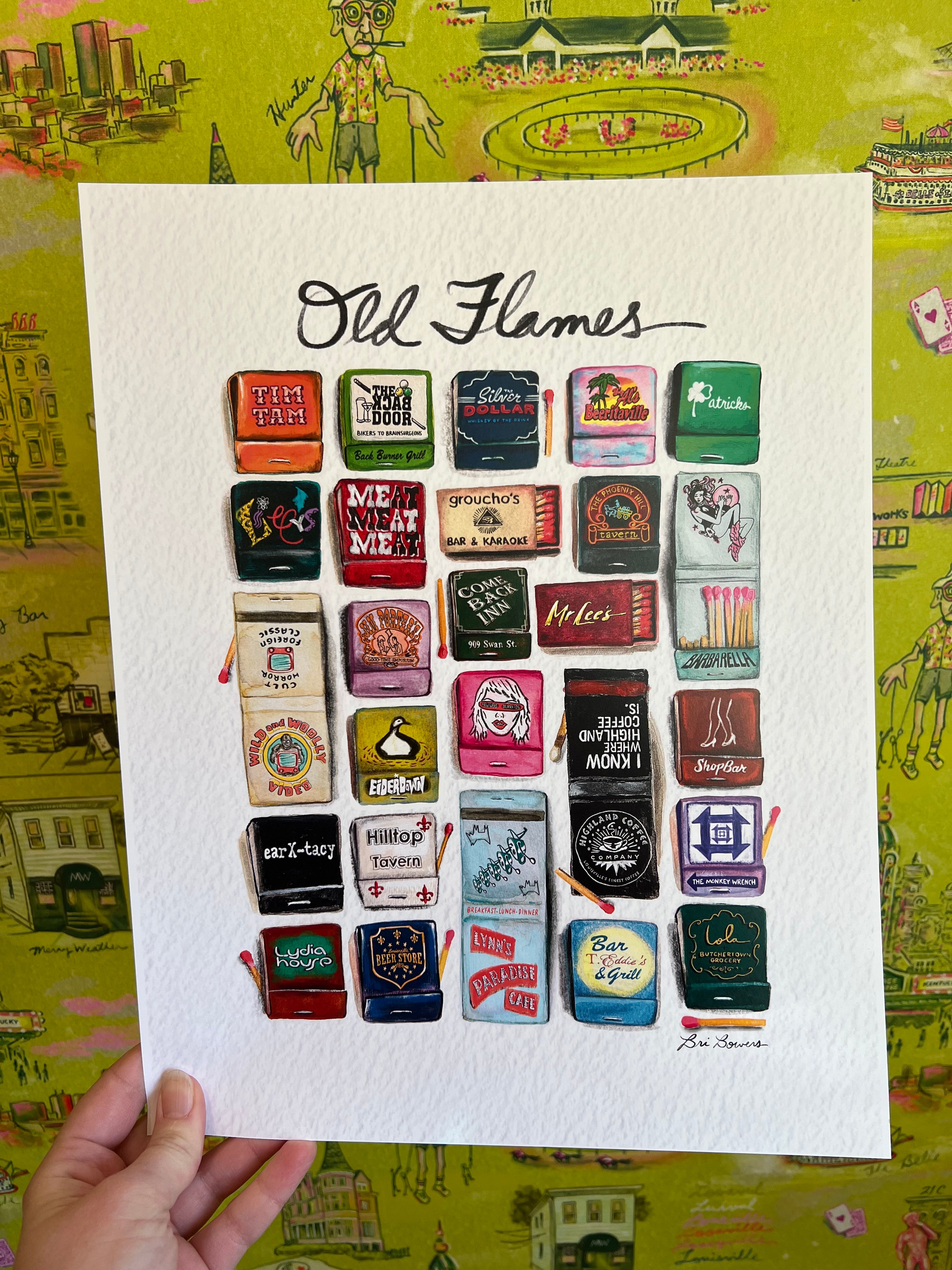 Old Flames Louisville Matchbook illustration 11" x 14" print.